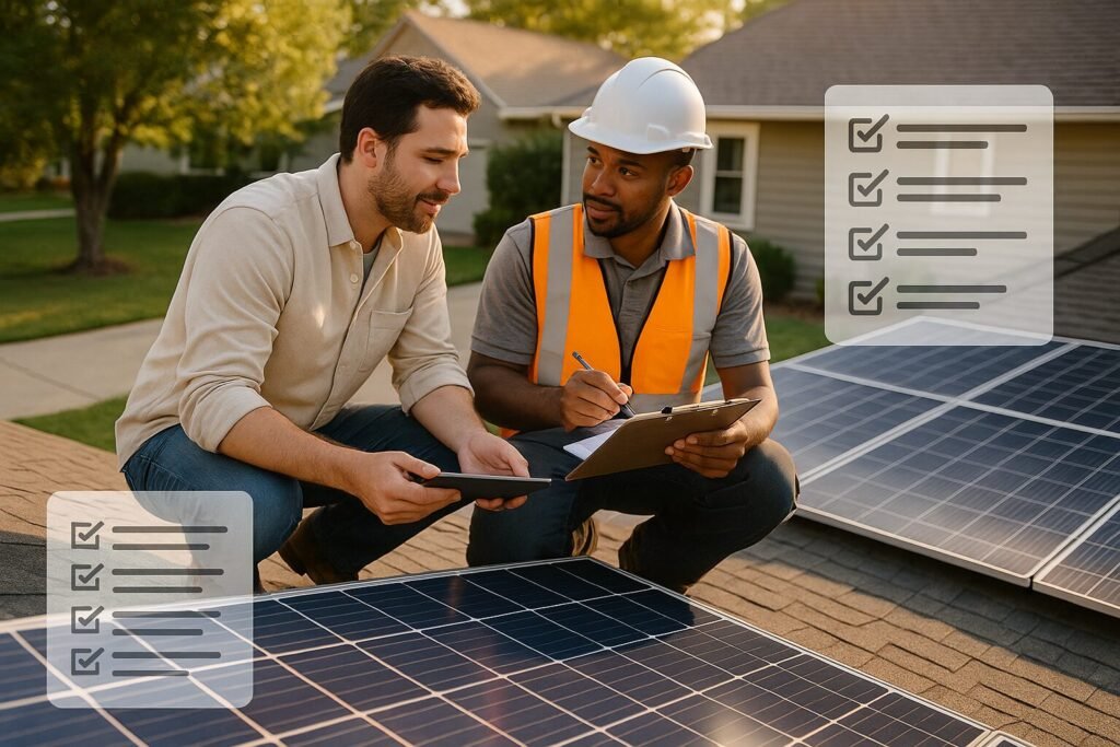- Check credentials: license, insurance, NABCEP.