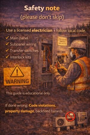 Anything involving your main panel, subpanel wiring, transfer switches, or interlocks should be handled by a licensed electrician and follow local code. This post is educational only.
